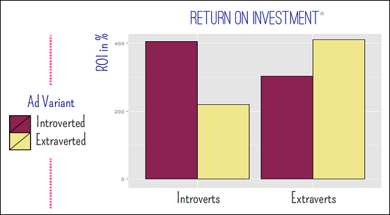 Showing introverts an introverted ad was twice as profitable as showing them an extraverted ad. Showing extroverts an extraverted ad resulted in 30% higher ROI than showing them an introverted ad.