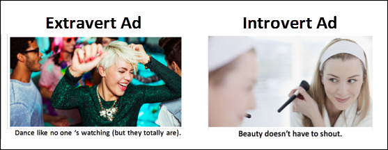 Researchers described the typical extravert/introvert to designers, and the designers came up with corresponding ads.