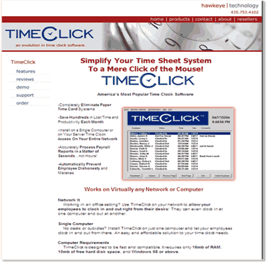 Though they have pieces of a Value Proposition listed on the page; e.g., Completely eliminate paper time card system; save hundreds in lost time or productivity each month, the Value Proposition as currently stated does not tell how this product can help the customer. Its more of a credibility indicator. The changes to test first should include: