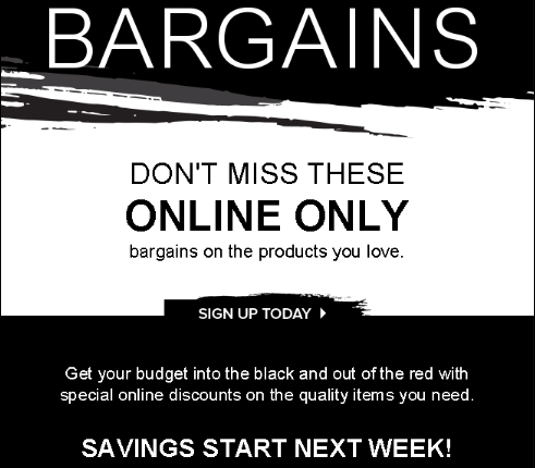 The Treatment showed promotional products, as seen below, behind the “Black Friday Bargains” headline.