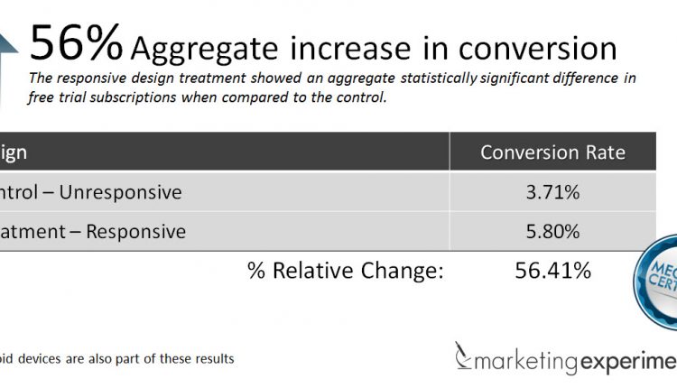 The responsive design treatment showed an aggregated statistically significant difference in free trial subscriptions when compared to the control.
