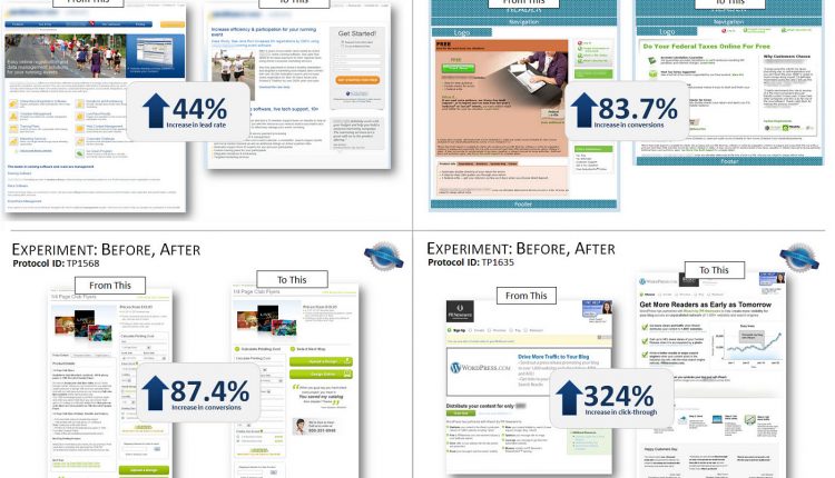 For example, in a recent Web clinic, Jon Powell, Senior Manager of Research and Strategy, MECLABS, asked the audience to look at these before and after screenshots of control and treatment pages from a few experiments to see if they could find any patterns.