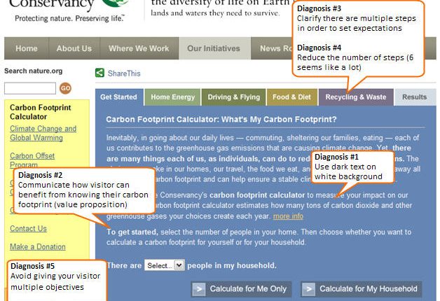 Thank you to Nature.org for submitting the carbon footprint calculator page for an optimization review. We hope you find this diagnosis helpful for testing new ideas and improving results.