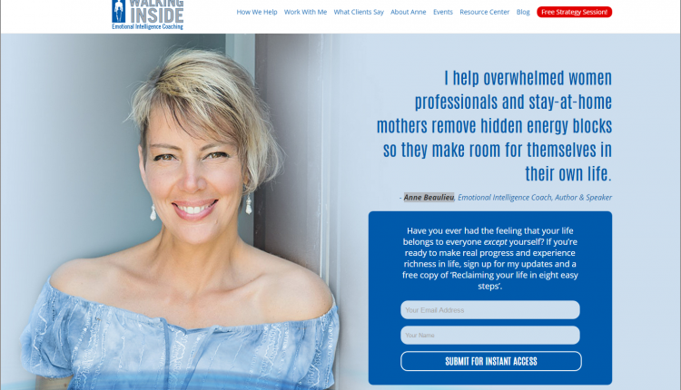 This month, we offered feedback on a page sent in by a reader named Chris. Chris’s page was for Walking Inside, a self-help and life coaching service offered by Emotional Intelligence Coach Anne Beaulieu.