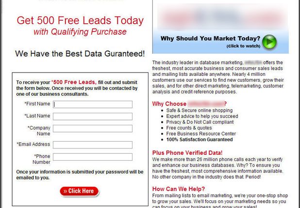 Value Proposition: “Because we have the most comprehensive(1) and accurate(2) lead database.”