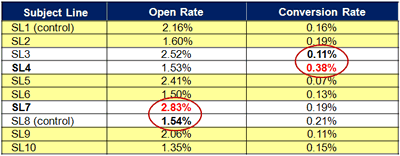 - Test the best subject lines by conversion in each pair against the control to determine the strongest subject line; focus on body copy elements.