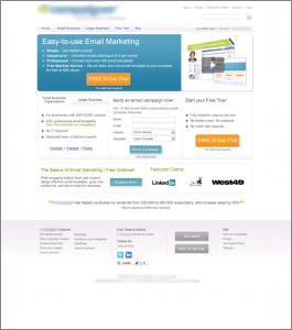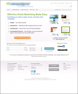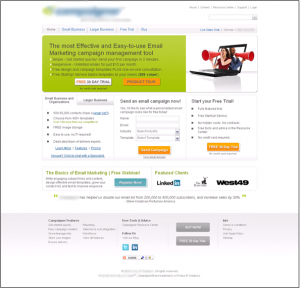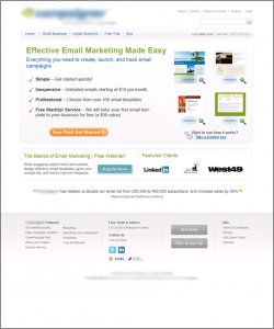 Secondly, the eye is drawn to the image to the right of the box. The image, while visually interesting, does not identify this company as an email marketing solutions provider. Likewise, the image does not support the value proposition statement or any of the copy that lies beneath.
