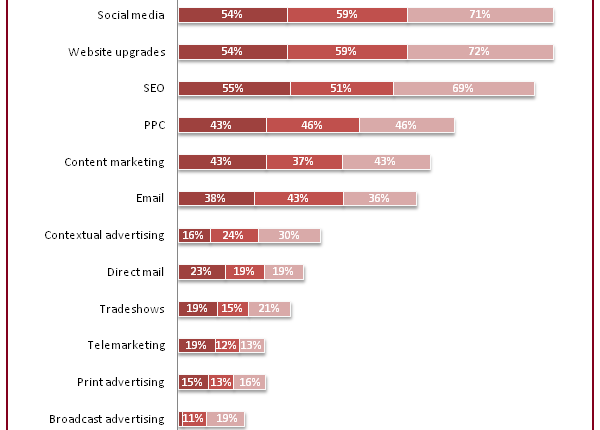 “To illustrate, here we see that 54-72% of all organizations plan to increase budgets for website upgrades. Additionally, most organizations plan to increase budgets for landing page optimization. These LPO efforts help organizations increase the quantity and quality of the visitor response to the website experience.”