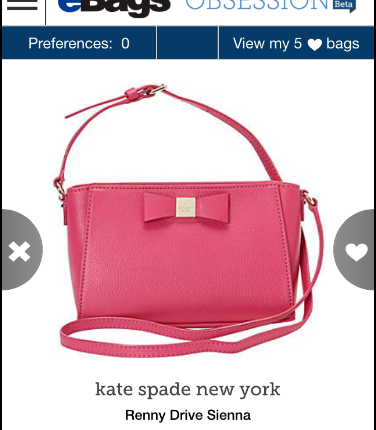 A swipe to the right means you “love it” and it will be placed in a library of good finds, while a swipe to the left means “leave it.” With each swipe, another handbag immediately pops up.