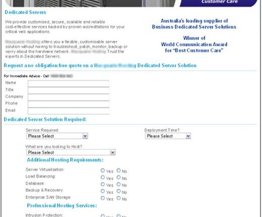 The original page was for an Australian company that offers dedicated hosting solutions. The primary goal of this page was to get the visitor to request a quote. These quotes were essentially leads that were then followed-up with and nurtured.