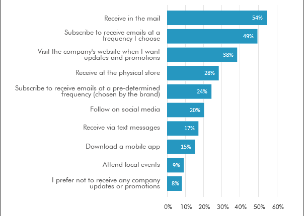 It might come as a surprise, but according to research conducted by our sister site MarketingSherpa, 54% of U.S. consumers would prefer to receive regular updates and promotions in the mail. That’s the highest percentage of any other method.
