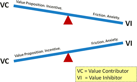 Throughout the Summit, Flint used a fulcrum example to illustrate that the perceived value offered on a landing page should exceed the perceived costs that a visitor associates in exchange for the offer.