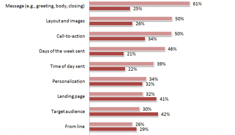 Share the headline of that chart with everyone on your marketing team – landing pages found to be more effective element to test than subject lines.