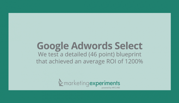 Topic: Google Adwords Select — We test a detailed (46 point) blueprint that achieved an average ROI of 1200%.