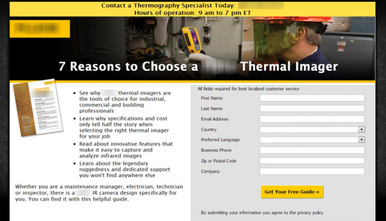 This B2B company wanted to promote one of its thermal imaging cameras by creating a downloadable guide where people can enter personal information on a landing page registration form and then get access to a product guide download that will help them choose which thermal imaging camera to purchase.
