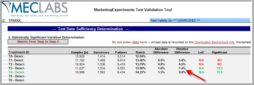 We ran the numbers through the MECLABS Test Validation Tool (part of the MECLABS Test Protocol that our research analysts use with Research Partners). Since the tests weren’t performed in our own labs, we weren’t able to check for possible validity threats and had to assume the data was normally distributed. After making those assumptions, we found that the two best performing treatments showed a statistically significant difference for open rate from the worst-performing treatment at a 95% Confidence Level — Group 2 and Group 1 outperformed Group 5.