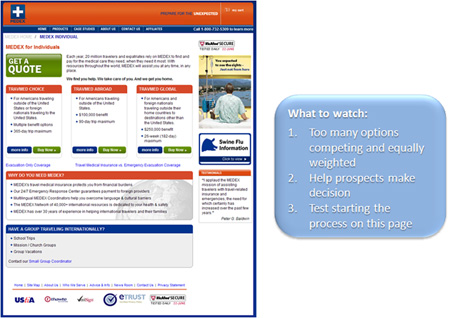 The MEDEX site submitted by e-Commerce Manager Sharon Mostyn is targeted at people or groups traveling outside of their home country.