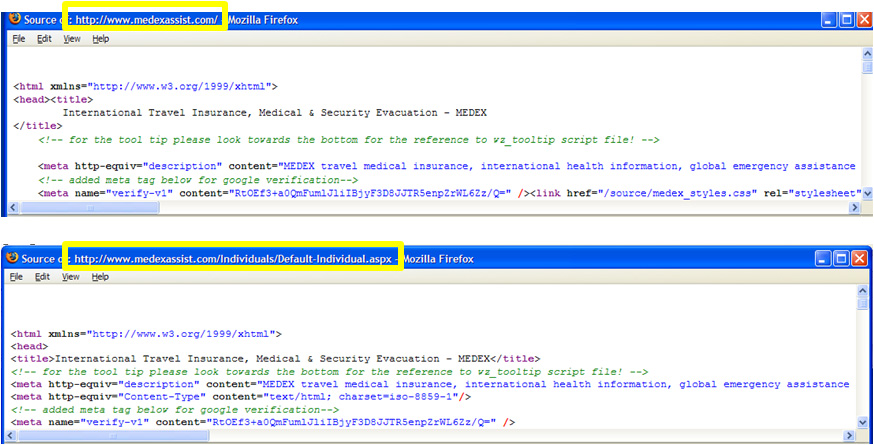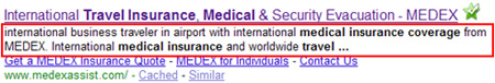 We used this site to illustrate the importance of using unique meta descriptions on each page. Here’s an example from the page MEDEX submitted for review: