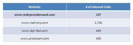 While Redeye has fewer inbound links than its competitors, this says nothing about the quality of the links. A concentrated effort to obtain inbound links can do wonders for your rankings. An additional 100-200 links, if done well, could help Redeye get ahead.