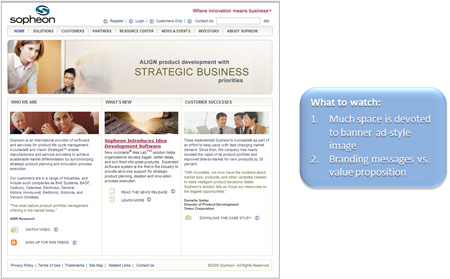 For this site, submitted by Director of Marketing Jeff Swetland, the target audience is C-level executives, VP-level HR and Operations.