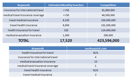A look at relevant keyword rankings helps to clarify the potential opportunity.