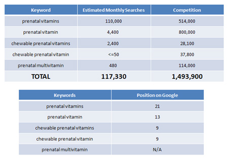 While there are over 117,000 monthly searches for the Bloomen Nutiriton prenatal product, there are over 1.4 million other webpages competing for the same keywords.